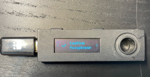 - You'll be required to confirm your pin. Once you've done that, it's time to choose a passphrase. This screen can be tricky to navigate. Play around with it a little bit. Just make sure to delete everything when you're ready.